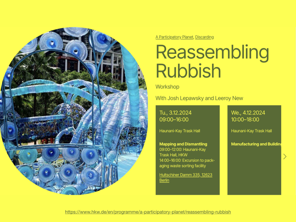 data, Discard Studies, Talks by Josh LepawskyDecember 1, 20241:17 amDecember 3, 2024 Protected: Workshop: Participatory Planet This content is password-protected. To view it, please enter the password below. Password: Related